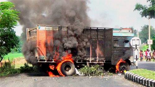 The crowd became unruly and attacked many vehicles on the roads in Rongajan. They also targeted public property, a police official said.