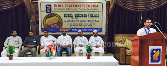 Mushtaq Ahmad, General Manager of Fateh Al-Jubail, U. Fayaz Ahmed President of JamiyathulFalah, Abubakkar Kulai Executive member of Social Democratic Party of India, Ahmad Bava of Addoor Gulf Committee, Arif Jokatte, Karnataka State General Secretary of Indian Social Forum, Abdul Khadar, President of Indian Social Forum-Al-Hasa, Iqbal Ankajal, President of India Fraternity Forum, Al-Hasawere among many distinguished guests who were present on the stage.