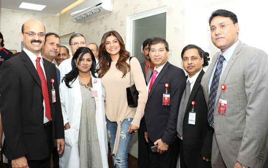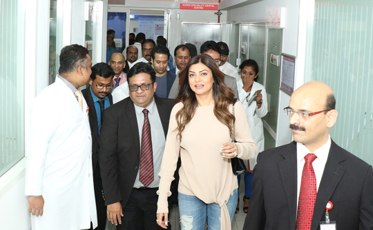Popular Bollywood Actress and former Miss Universe, Sushmita Sen visited Thumbay Hospital - Ajman at 11 am on Thursday, 31st March 2016. Hundreds of patients and visitors rushed to catch a glimpse of the star, as she toured the hospital’s facilities.