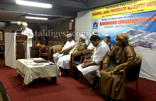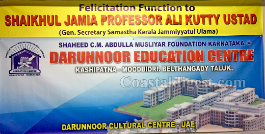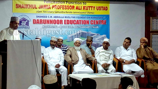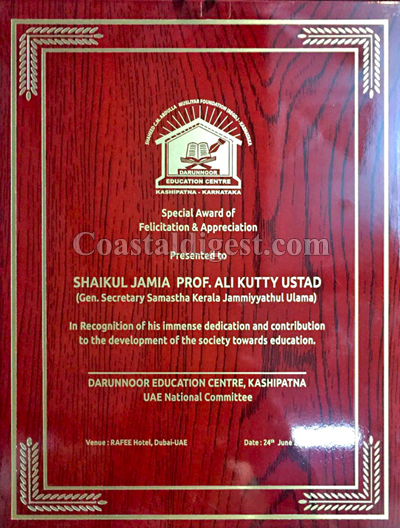 Dubai, Jul 1: Prof K Ali Kutty Musliyar, the general secretary of Samastha Kerala Jamiyyathul Ulama, the largest Muslim organization in the south Indian state of Kerala, was accorded a warm felicitation recently by the UNA national committee of the Darunnoor Education Centre, Kashipatna, Dakshina Kannada.