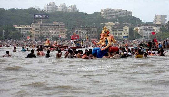 In Mumbai, devotees attempted to immerse Police officer , But in this reverse happened .... Sad news.... People who do not know swimming, why they are undertaking such adventures, without thinking of their families and parents ....