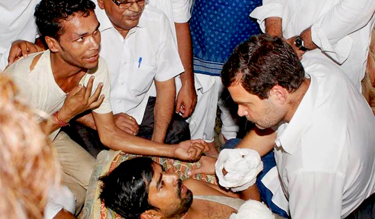As tempers ran high, Congress vice president Rahul Gandhi visited the village where he accused the Prime Minister, Harayana Chief Minister, the BJP and RSS of practicising "politics of crushing" those who are weak which results in such incidents.