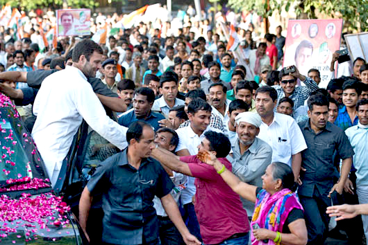 Earlier, the 43-year-old MP arrived to a rousing reception in Amethi. Perched atop an SUV, the Gandhi siblings waved as their convoy made its way through the huge crowd that had lined the entire route to the district collectorate in Gauriganj in Amethi where Mr Gandhi filed his nomination. Rose petals were constantly showered on them in line with the grand welcome promised by the local Congress unit.
