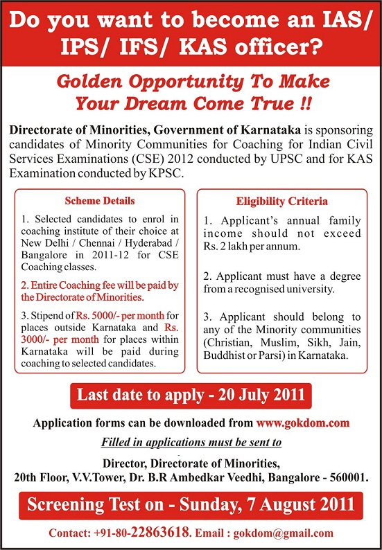 Here's a good news for all Civil Services Aspirants! Announcing Chanakya IAS Academy’s largest ever scholarship program at Mangaluru centre to reward top 108 meritorious students and graduates desirous of building successful careers in Civil Services to serve the nation, which is changing at a rapid pace. Top 3 students, based on their marks will get 100% Scholarship, 50% to next 10 students and 25% for the candidates ranking in next top 95 slots. The test will be conducted on 8th October 2017.