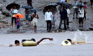 New Delhi, Aug 20: The Gujarat government has been asked to explain in four weeks why nearly 100 children are forced to swim a river every day to get to school.guj children swim