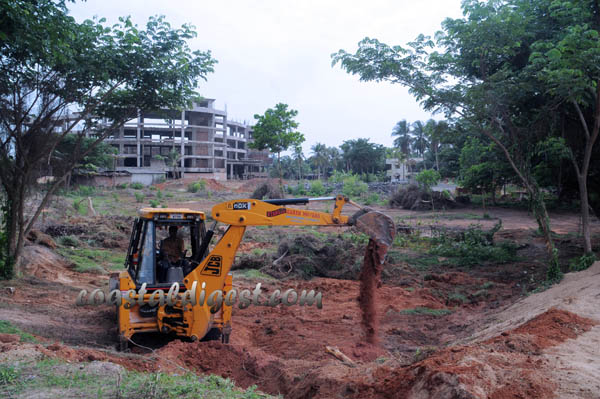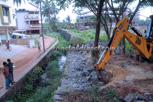 The tank covers 33 cents land. Using the JCB, the wall was cleared. In fact, Mangalore taluk surveyor had surveyed the tank are and had submitted a report on encroachment by an individual to the MCC Commissioner on Monday.