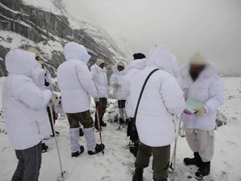 The Siachen Glacier is the world's highest battlefield, where temperatures drop to minus 45 degrees Celsius and even more during the winter. Even in summer, the night temperatures drop below the freezing point in the area.