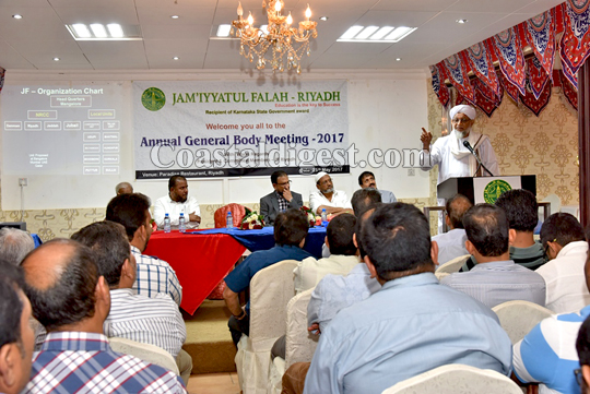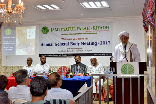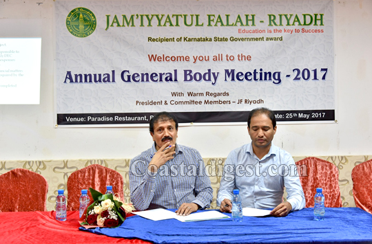 Riyadh: The Riyadh unit of Jam’iyyatul Falah organized its annual general body meeting at Paradise Restaurant, on here on May 25, 2017. Meeting was started with the recitation of Holy Quran by Master Muzammil Muzaffar Ali.
