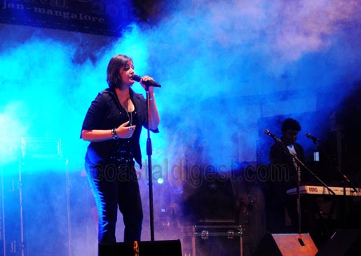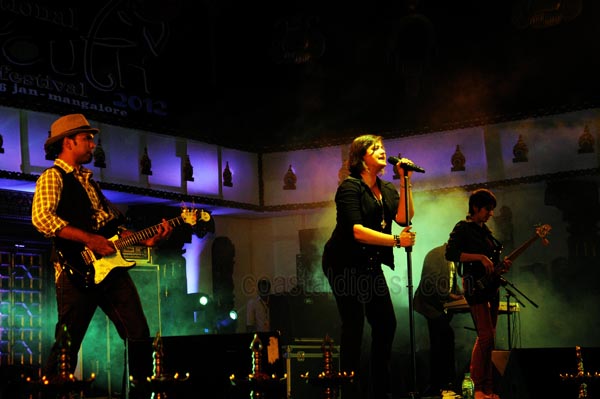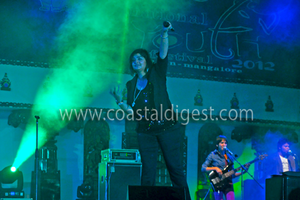 Mangalore, January 17: Dazzling lights, lots of fun, and pulsating music marked the concluding part of the hugely succesfull 17th National Youth Fest 2012. Vasundhara Das, the multi talented versatile singer crooned for the young crowd which had packed the Mangala Stadium on a Monday night.