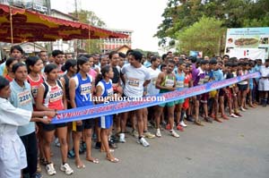 Manipal, April 1: General Manager of Syndicate Bank S K Abrol flagged off the 21 KM Synd Bank Half marathon, organized by Udupi District Athletic Association, in front of the Syndicate Bank Head Office, Manipal on Sunday morning.