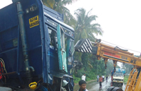The accident resulted in traffic jam on highway an hour as it took nearly half an hour to remove the damaged heavy vehicles from the road.