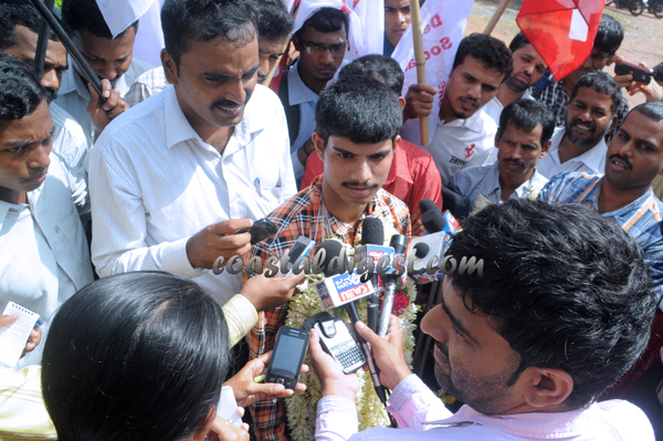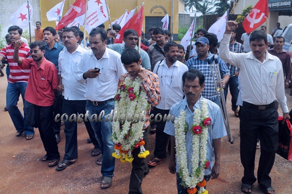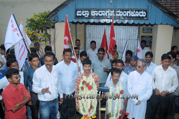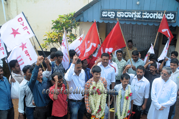 The activists of district units of Communist Party of India (Marxist), Democratic Youth Federation of India and Students Federation of India extended a floral welcome to the duo, who stepped out of the Mangalore prison at around 10:00 am.
