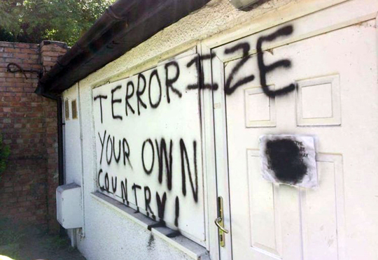 London, Jun 5: A racist graffiti reading "Terrorise your own country" and "Go away" was spray-painted by vandals on an Islamic Centre in south London after the van and knife attack in the heart of British capital claimed seven lives.
