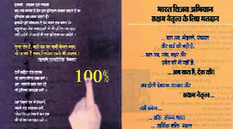 rss_pamphletsBhopal, Apr 21: Rastriya Samajsewak Sangh (RSS) was at its polarising best when they issued pamphlets in Madhya Pradesh asking people from 'majority' community to vote 100% and criticised the increasing appeasement of 'minority' community.