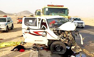 In a report, Sabq.org quoted officials as saying all nine victims were killed when the vehicles they were on collided head on along the south Makkah coastal highway near Al Jebel station.