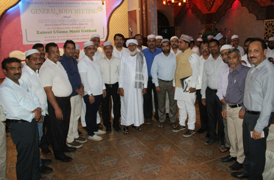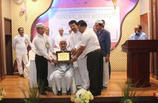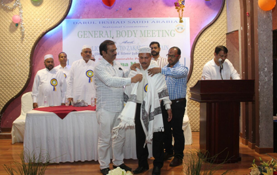 Various committee of Darul Irshad across Saudi Arabia comprising well-wishers and promoters work for the development of this Institution. The Saudi national committee which elects its working committee once in three years in a general body meeting was glad to hold the meeting in the presence of the founder of this Institution and one of the most respectable scholar among Islamic scholars in Karnataka, ZainulUlama Mani Usthad.