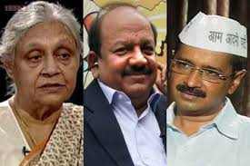 Sheila Dikshit, seeking a record fourth term as Delhi Chief Minister, appears to be facing the toughest battle in the national capital with the emergence of Arvind Kejriwal's Aam Aadmi Party upsetting the calculations of both the Congress and the BJP. Harshvardhan is BJP's Chief Ministerial candidate.