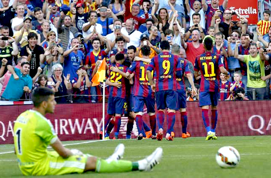Sociedad was fortunate to escape a scoreless first half at Camp Nou, but Neymar broke through in the 51st with his 35th goal of the season after Lionel Messi’s pass was headed on by a defender for the Brazilian to nod home.