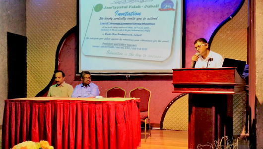 Jubail: The 12th annual general body meeting of Jam’iyyatul Falah (Jubail Unit) was held on Friday June 26 at Cook Xon Restaurant in Jubail, Saudi Arabia followed by an Iftar party. Fayaz Ahmed was re-elected unanimously as the President of JF-Jubail unit for the term 2015-2016.