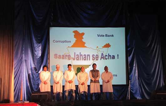 The drama titled Sare Jahan Se Acha enacted on Indian political system was a real masterpiece. The audience was urged to support honest and God-fearing politicians who adhere to moral values and to be with a value based political party that can bring about a change in our society.