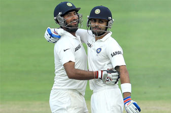 Pujara's 153 showed similar signs of great potential as the pair battered the Proteas quicks for 175 in a session late on Friday during their game-changing second-innings stand. Exasperated, South Africa bowler Vernon Philander simply said "hats off to them" after Test cricket's most fierce attack was tamed.