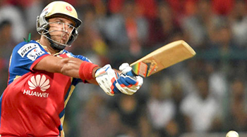 Along with Yuvraj, de Villiers rebuilt the Bangalore innings. De Villiers smashed four boundaries and a six in his 33-run knock off 17 balls and he departed with Bangalore struggling at 107 for four in 14.2 overs before Yuvraj took centrestage.
