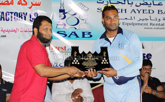 The final match was between Khobar United and the SAB warriors. The SAB warriors won the toss and elected to field first. With a splendid start by the openers Toufeeq and Fayaz, the Khobar United managed to score 73 runs in 10 overs loss of 7 wickets. Faisal of Khobar United bagged three wickets in the finals.