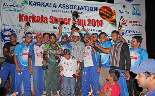 Dammam: The Khobar United emerged champions at the Karkala super cup 2014 knock-out cricket tournament organized by the Karkalla Association Saudi Arabia (KASA) under the sponsorship of Al Jazeera Ambitions Factory & SAB Gen con Est.