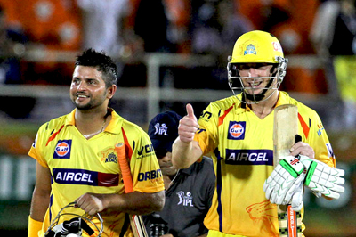 David Hussey was giving company in the middle and he started very slowly. After carefully seeing things through in the early overs, Hussey clobbered two massive sixes and Raina smashed another six and the the target was in touching distance. Raina now has 400 runs in each of the IPL’s played so far and yet another fifty towards the end and finished things off with a stylish boundary. On this form, Chennai will hold all the aces in the upcoming knock-out games.