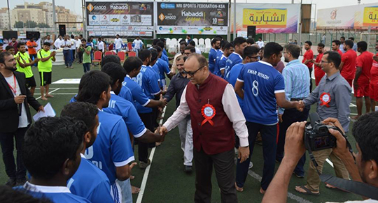 Opening Ceremony wasstarted by playing the National Anthem of both India and Saudi Arabia. Colorful League was grandly inaugurated by the Chief Guest Shri. Anand Kumar, Consul(consular) of Jeddah Consulate by freeing the birds. Speaking on the occasion he said that he felthappy to see the players from different parts of Saudi Arabia and it was great occasion to see Kabaddi match live in Saudi Arabia.