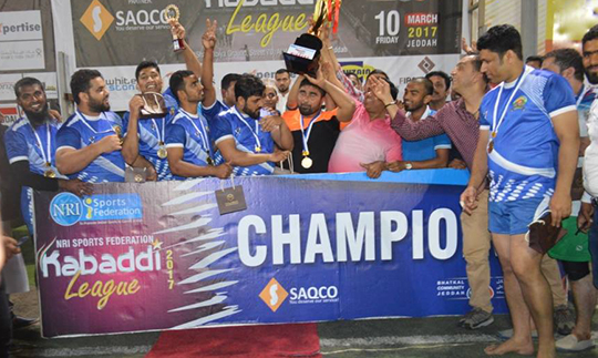 Jeddah: Karavali Welfare Association Riyadh (KWAR) won the prestigious Kabaddi League- 2017 championship trophy organized by NRI Sports Federation, in association with SACQO and Bhatkal Community, Jeddah on 10th March 2017 at Shababiya Ground, Jeddah, Saudi Arabia. Nine teams from all over Saudi Arabia participated in Kabaddi League, 2017.