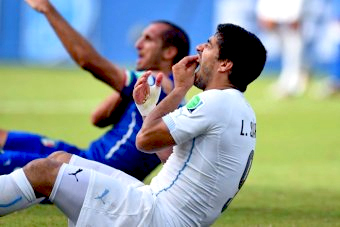 The latest incident occurred in the tense final minutes of Uruguay's last Group D match against Italy, shortly before the South American champions scored to seal a 1-0 win and knock Italy out of the tournament.