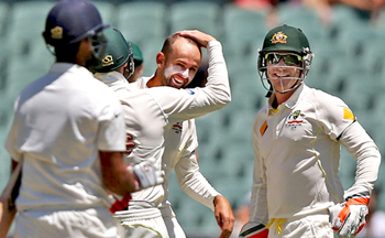Adelaide, Dec 12: Spinner Nathan Lyon took his sixth five-wicket haul in Test cricket as India collapsed on day four of the first Test against Australia to be bowled out for 444 runs in their first innings here today.