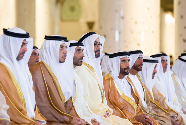 Lt. General Shaikh Saif bin Zayed Al Nahyan, Deputy Prime Minister and Minister of the Interior; Shaikh Mansour bin Zayed Al Nahyan, Deputy Prime Minister and Minister of Presidential Affairs; Dr Shaikh Sultan bin Khalifa Al Nahyan, Adviser to the UAE President; Shaikh Nahyan bin Mubarak Al Nahyan, Minister of Culture, Youth and Community Development; Shaikh Hamdan bin Mubarak Al Nahyan, Minister of Higher Education and Scientific Research; a number of Shaikhs, senior military and civilian officials, members of diplomatic corps, and a group of Emirati and expatriates offered prayers along with Gen. Shaikh Mohammed.