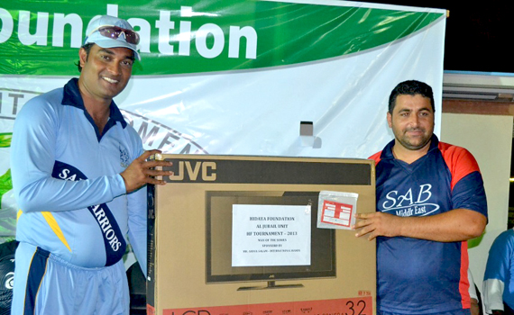 Iqbal from Eastern Blue awarded as Man of the Final Match and Man of the Series goes to Khasif of SAB Middle East. Best Batsman is awarded to Ali of SAB while Imthiyaz from Eastern Blue declared as Best bowler of the tournament.