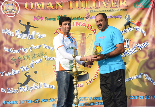 The mega event was traditionally inaugurated by lighting of the lamp by K.K.Poonacha at Sidab Ahli sports complex. K.K.Poonacha who had a professional and illustrated hockey career both as a player and coach had won many International and national awards to his merit was also serviced as a Junior Commissioned Officer in Indian Army. Presently serving as Oman national hockey coach.With other noted sports, business & community leaders of Tulunadu, he appreciated Oman Tuluver for organising such a splendid sports event and encouraged people to prove their physical fitness and enhance sportsmen spirit.