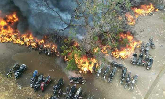 Around 1,000 two-wheelers and bicycles were parked in the parking area during the time of the incident.