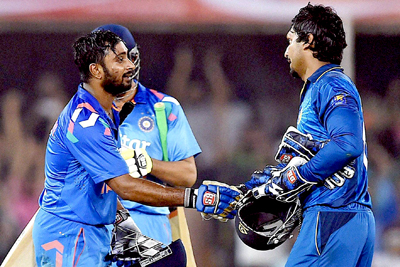 Tilekaratne Dilshan, at the other end, batted aggressively and took ten runs with the help of two successive fours in speedster Yadav's second over.