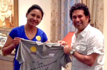Sachin Tendulkar meets Sarita Devi, presents her autographed jersey