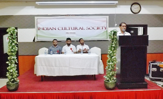 Mr. Majeed Aladka, President of Indian Cultural Society, Abu Dhabi Sector, proposed vote of thanks. Mr. Shareef Sarve, General Secretary of Indian Cultural Society, Karnataka chapter, UAE, compered the programme. Mr. Mubarak Parangipete, General Secretary, Indian Cultural Society, Abu Dhabi, UAE was present.