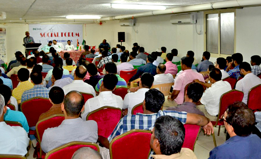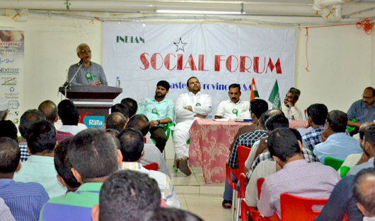The programme began with a welcome and introductory address by Wasim Sadiq Ali, President of ISF central committee Eastern Province. He said that ISF is a socio political platform of expatriate Indians dedicated for the welfare of the Indian expats. The sole intention of this Forum is to unite the expatriate Indian community cutting across cast, creed and religion and to politically educate them.