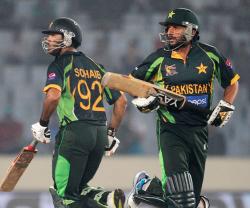 Afridi, who has been very inconsistent with the bat, hit the first six over deep extra cover and the next over long on as he scored 34 not out in only 18 balls with two fours and three sixes.