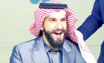 Dubai, Dec 9: Bollywood actor Ranveer Singh got a Saudi makeover on the “Sabah Al-Khair Ya Arab” (Good morning Arabs) show on MBC, when he put on a Saudi red and white checkered headdress, shemagh and igal, the black rope-like cord, that holds the shemagh in place.