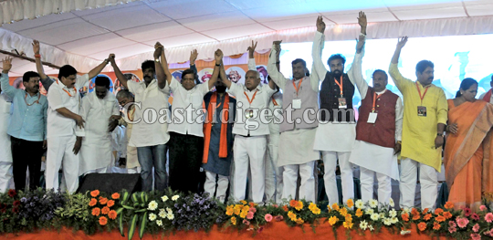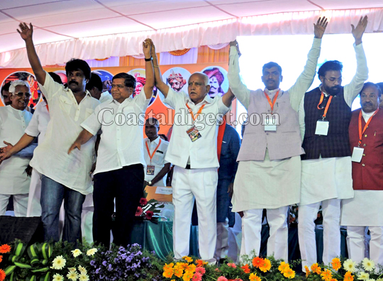 Jagadish Shettar, leader of the Opposition in the Assembly, said that the Siddaramaiah government was on its way out. Former deputy chief minister R?Ashoka charged Siddaramaiah with allowing his ministers to loot the exchequer. MLA?C?T?Ravi opposed the government's move to celebrate Tipu Jayanti. A huge procession was taken out on the streets of the town prior to the convention.